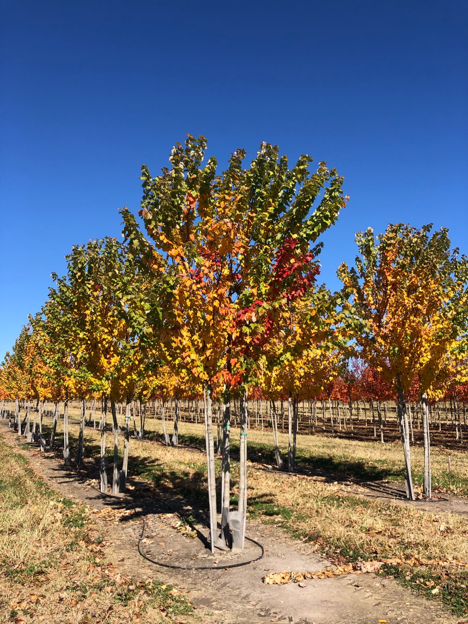 This large growing Red Maple is a rangy, fast growing monstrosity that is hard to tame. Shoals Red Maple has shown us the perfect fall color trio red, orange, and yellow. It is a southern selection that holds up in the heat, has larger than typical leaves and is striking as a large multi-trunk specimen.