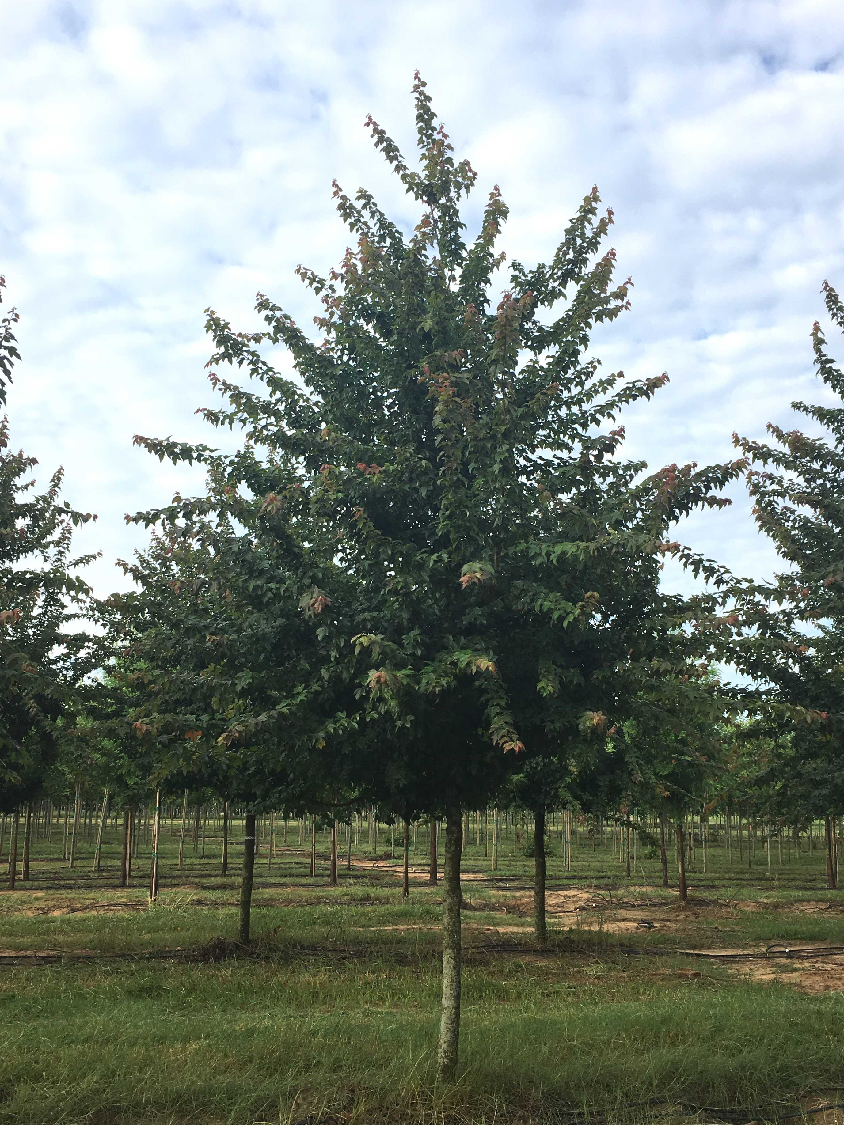 A wonderful new addition to the Trident Maple cultivars, exclusive to Bold Spring. This dense, compact maple has a pyramidal habit that rounds with age. Blood Moon® gives a unique show throughout the growing season - not only does the new spring foliage emerges bright red, but the new growth emerges orange to red all throughout the summer finally maturing to a striking dark green.