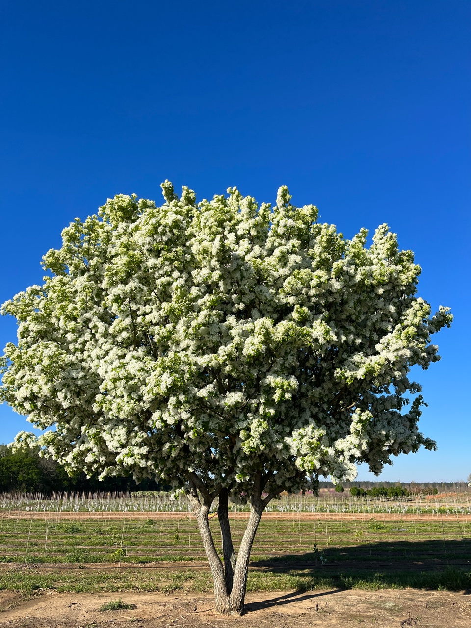 This four season delight is John Barbour's favorite flowering tree. The pure white flowers of China Snow (Southern Type) smother this tree in late April creating a stunning show. The round to oval-rounder, thick summer leaves are glossy and green giving way to a creamy yellow fall display. On older trees the furrowed bark accentuates the attractive outline of curved trunks throughout the winter months. All this in a durable and adaptable package! We also offer this tree as a single stem (std).