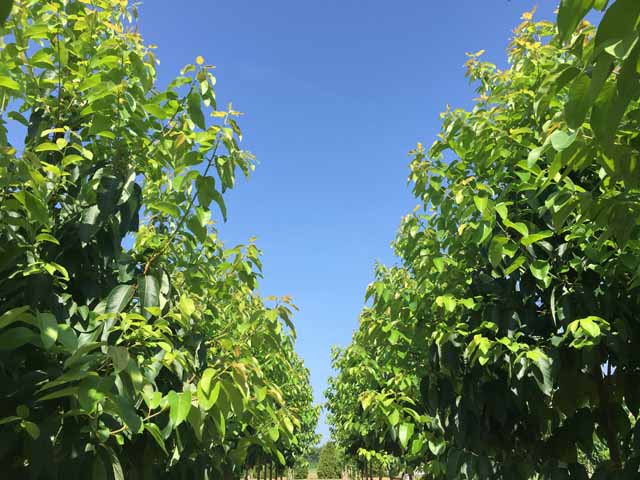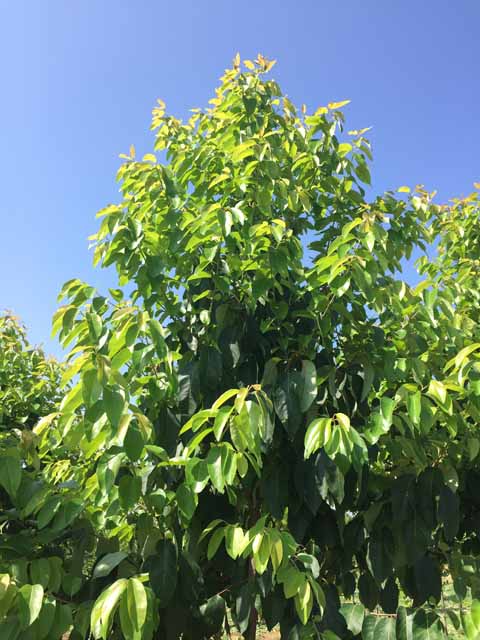 'Meadowland' is a beautiful selection of our native Persimmon with large tropical foliage. We are the only knucklehead nursery you ever heard of to grow a cultivar of our native persimmon for ornamental purposes, but at our age we may just be stuck in our ways. ‘Meadowland’ has a nice shade tree habit, attractive foliage, yellow fall color, and was developed for ease of transplanting.