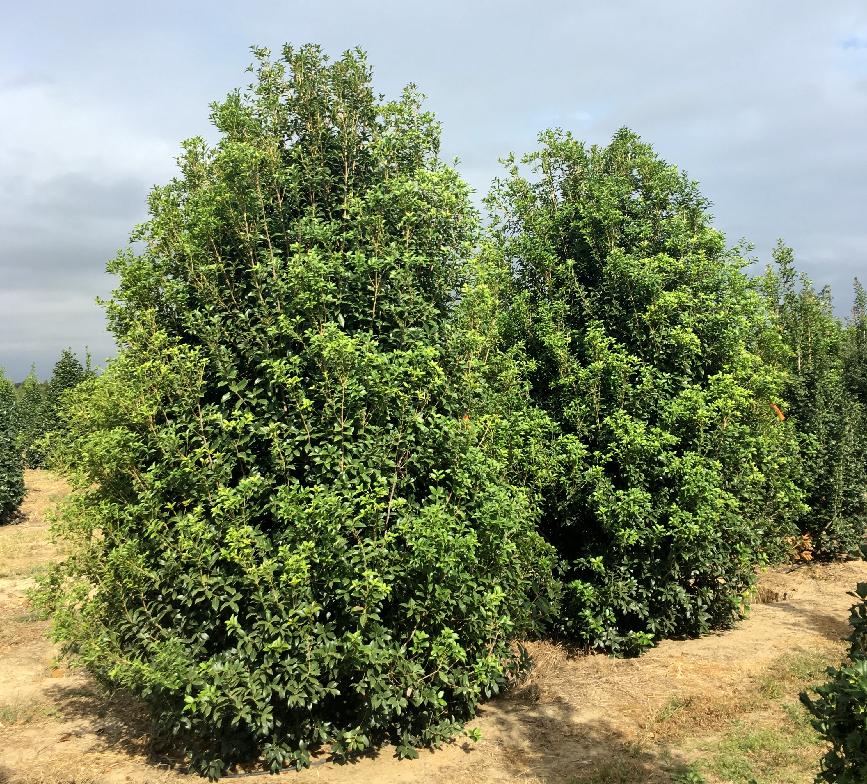 Bobby Dodd, son of the great nurseryman Tom Dodd of Semmes, AL., collected some seed from a female I. latifolia-Luster Leaf Holly-growing at the greenhouse at Auburn University. Mr. Tom planted the seed and all of them ended up looking similar, and he determined that the pollinator was I. cornuta-Chinese Holly. He continued to propagate many of the females and they were named, as a group, the "Auburn Hollies". One of them, #119, was planted at brother Tom Dodd Jr.'s house, and grew into a beautiful pyramidal, dark green large shrub with heavy, large red berries. After brother Bobby passed away, Tom Jr. named this plant for him. Bobby Dodd Holly will grow to 25' and is more shade tolerant than most Hollies.