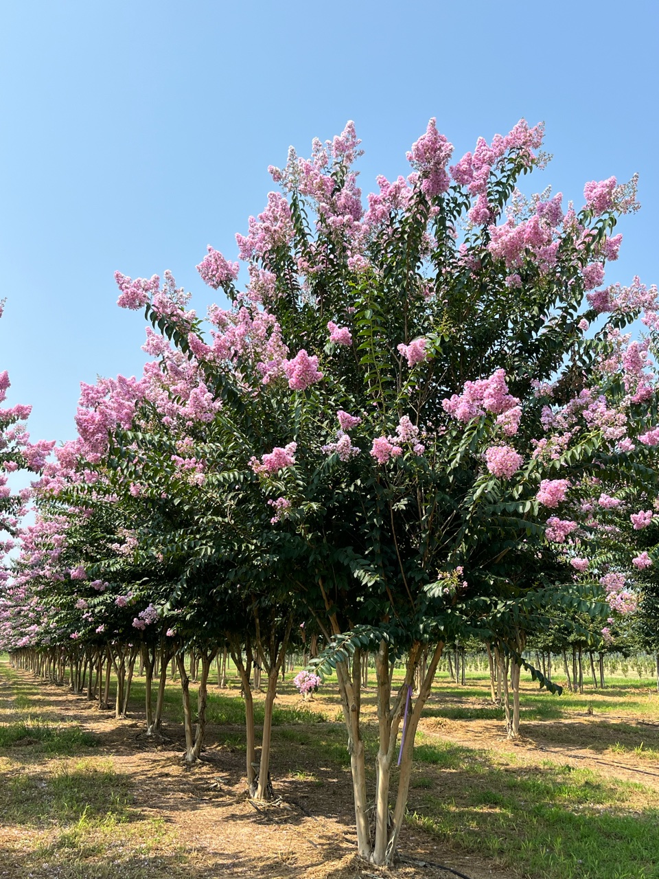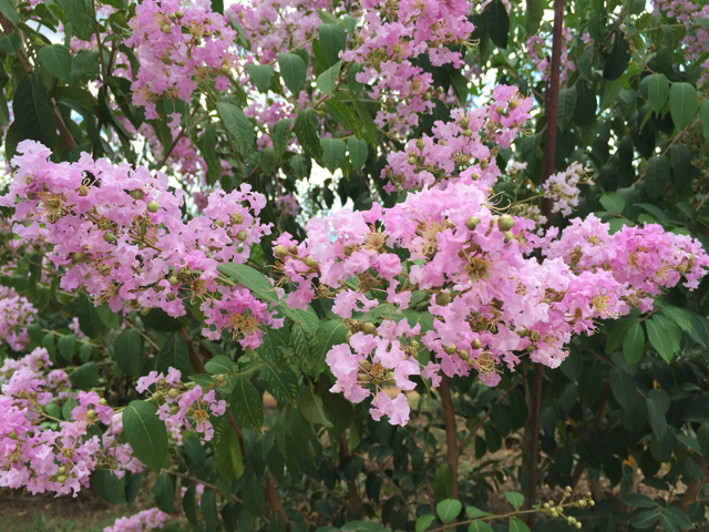 ‘Basham’s Party Pink’ is said to be a cross between ‘Near East’ and Lagerstroemia fauriei dating back to 1965. Large lavender-pink blooms on a vigorous tree with hybrid cold-hardiness and cleanliness. One of the lesser known of the fauriei hybrids, but ‘Basham’s Party Pink’ has enjoyed a loyal following in Texas for decades.