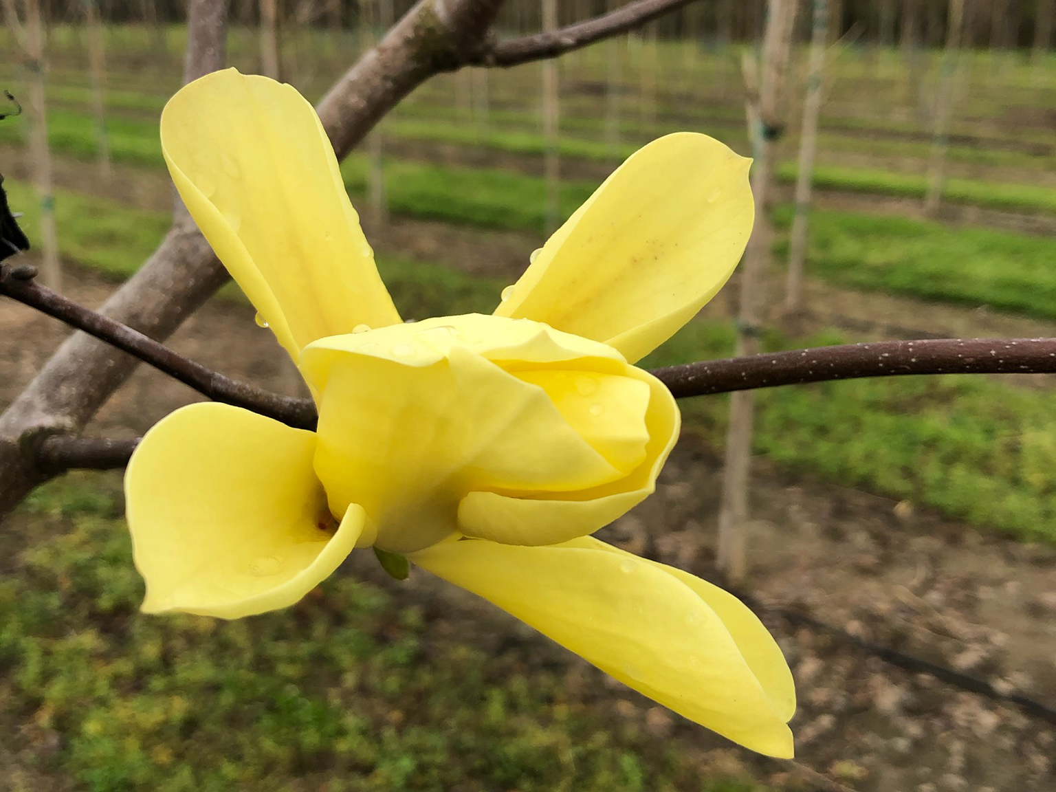 This cross of M. acuminata and M. denudata usually forms a small tree with an upright central leader or sometimes a multi-stemmed tree.The yellow butterfly like blooms are worth the hype. Large, bright flowers bloom in the springtime that are lemony in both color and scent. Large dark-green, glossy leaves follow the bloom continuing the visual impact of the Butterflies Magnolia into the summer.